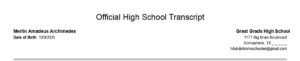 You see… Merlin Amadeus Archimedes is the classically trained, genius, fictional student whose name appears on the absurdly embellished sample transcript in my website post offering advice to create a Simple Solid Homeschool Transcript
